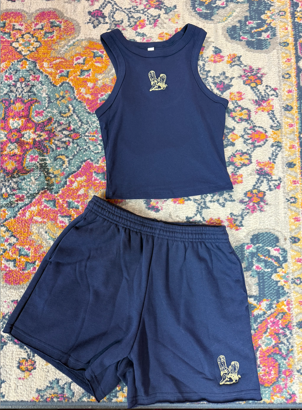Bella + Canvas, women's shorts that are so comfy and pair perfectly with the Cowboy Boots Tank or Crewneck or dare we say it…BOTH! Custom design embroidered in a light, butter yellow