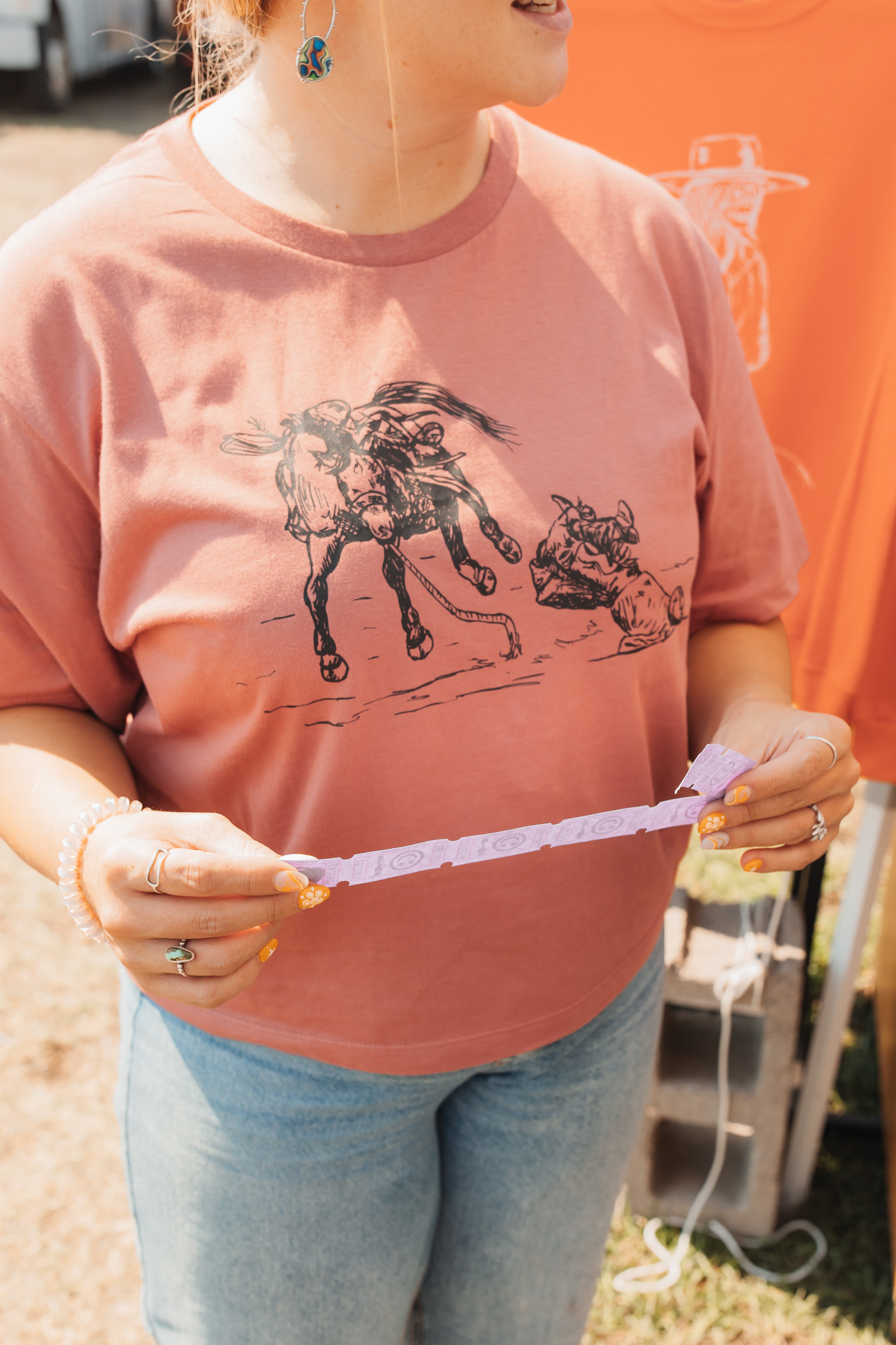 Add a splash of boldness to your wardrobe with the maroon Ope Cropped Tee. This playful, cropped-fit top channels that classic cowboy charm we all adore, making it perfect for any occasion—from casual days out to fun nights with friends. Embrace comfort and style in one easy choice!