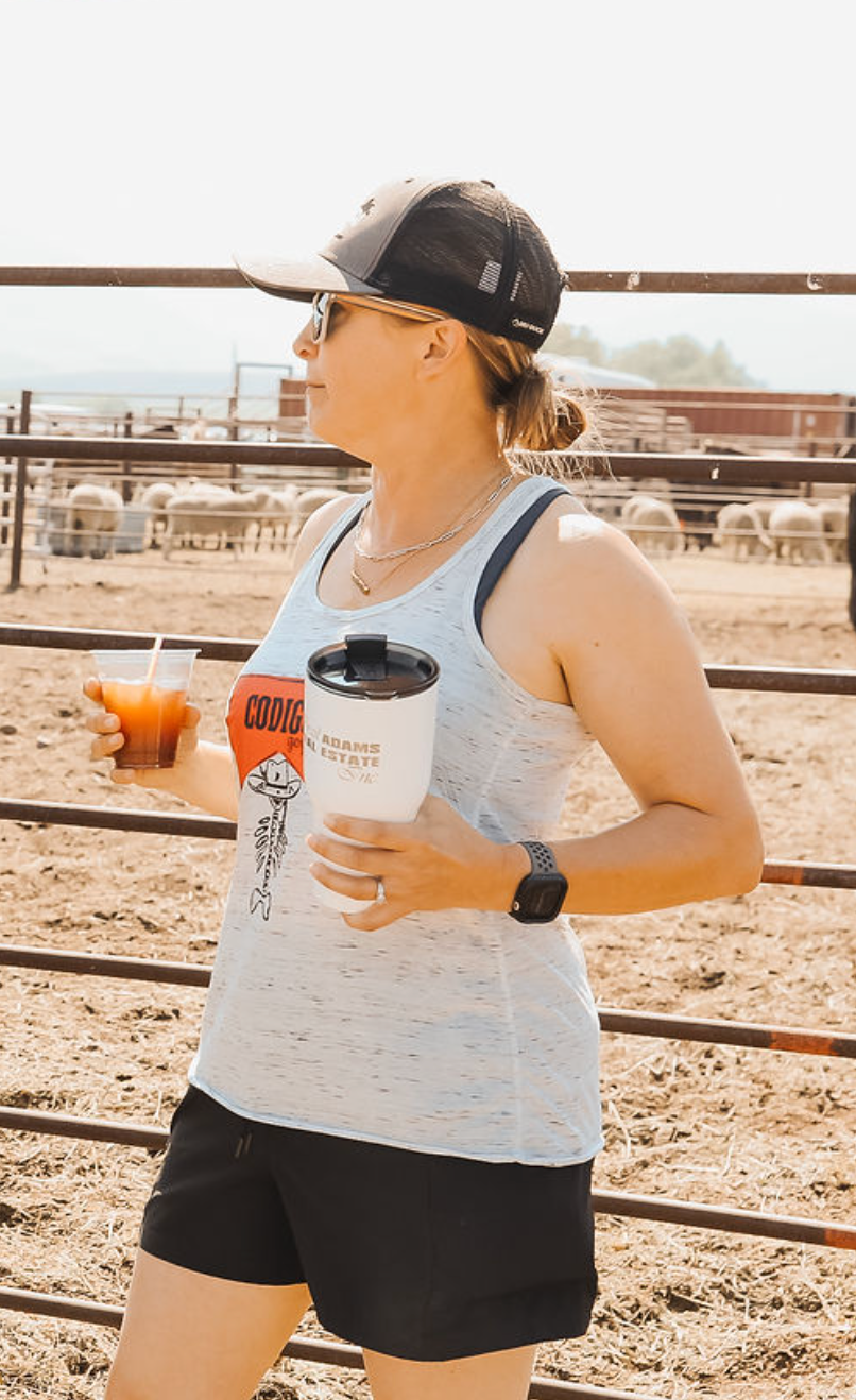These Bella + Canvas flowy, women's tanks are favorite of my custom merch clients. They fit well on all body types and are comfortable. In heather ash, they feature my Codigo Gogo design with a skeleton cowgirl. A play on the pop-culture Marlboro designs that you see trending, this cute tank is the best for concerts or fun adventures with the girls.