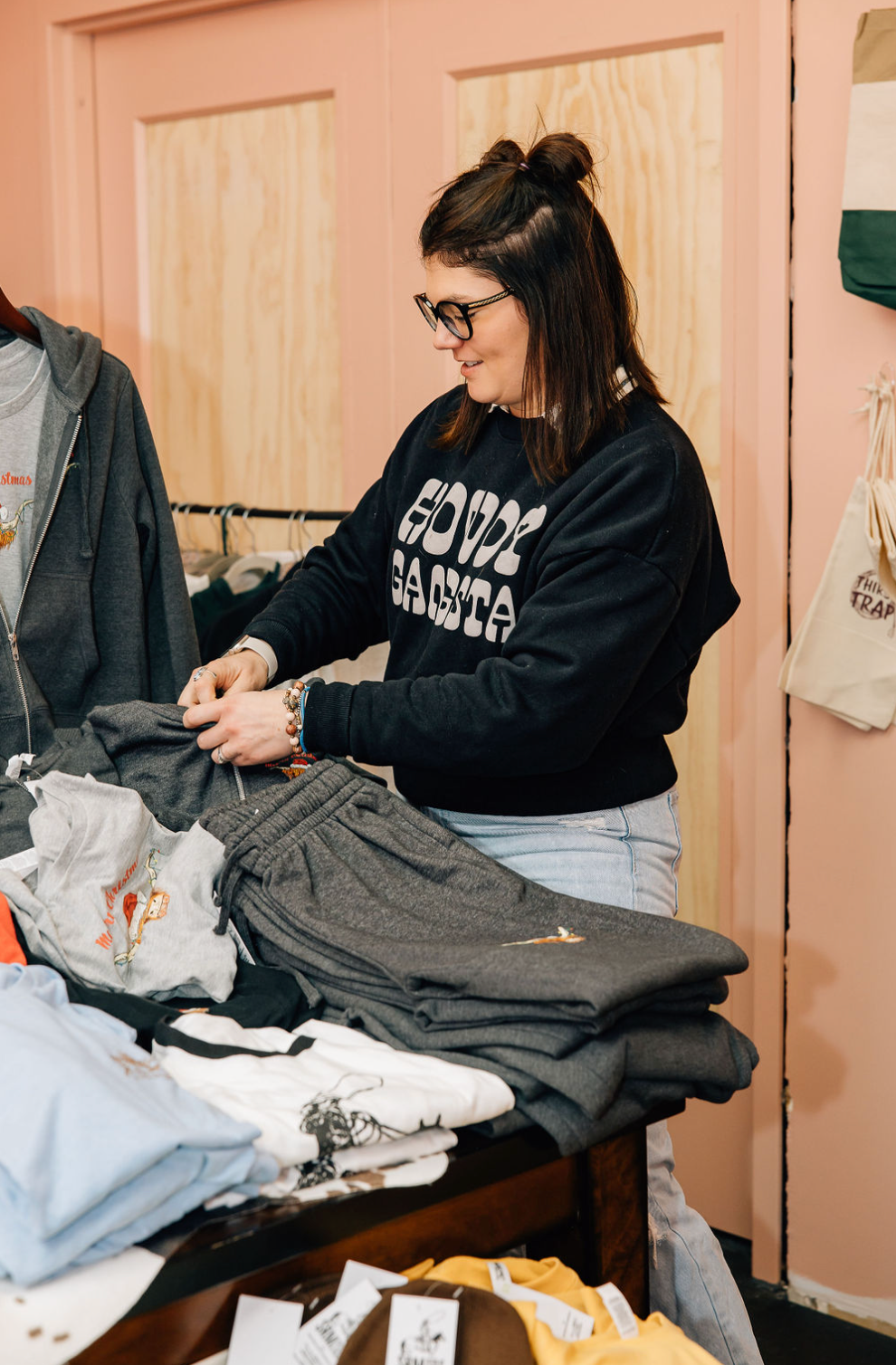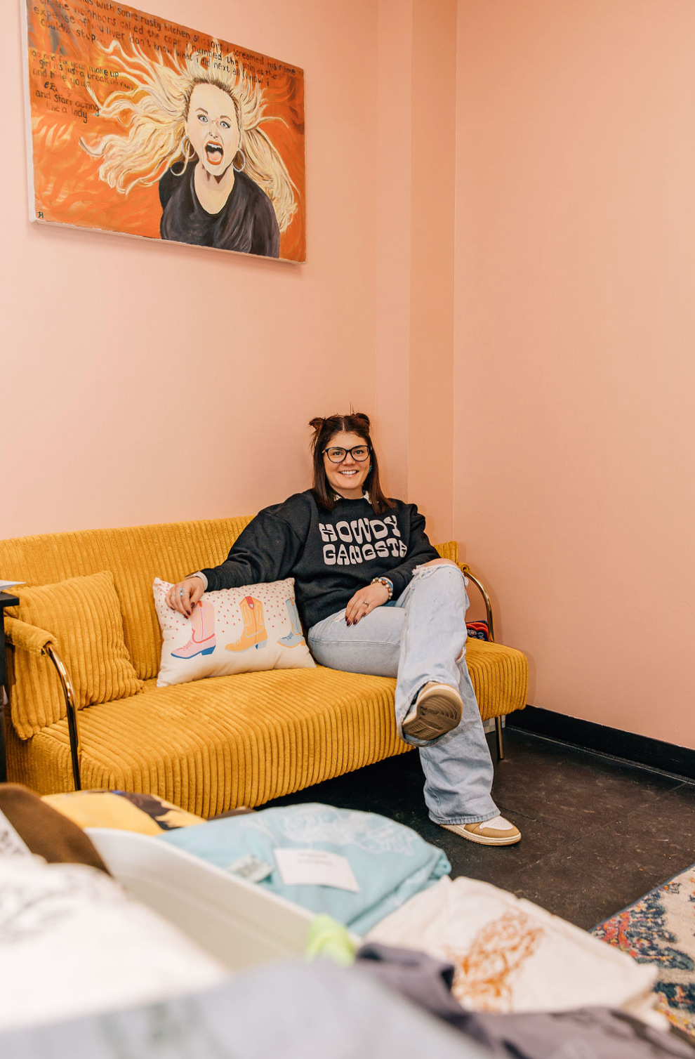 Let me tell you a little secret...Lulu copied these, not the other way around. The ultimate dupe punched up with Howdy Gangsta in puff on the front and small on the back corner in grey. These Next Level black crewnecks are a relaxed fit in women's sizing. THICK and cozy as it gets.
