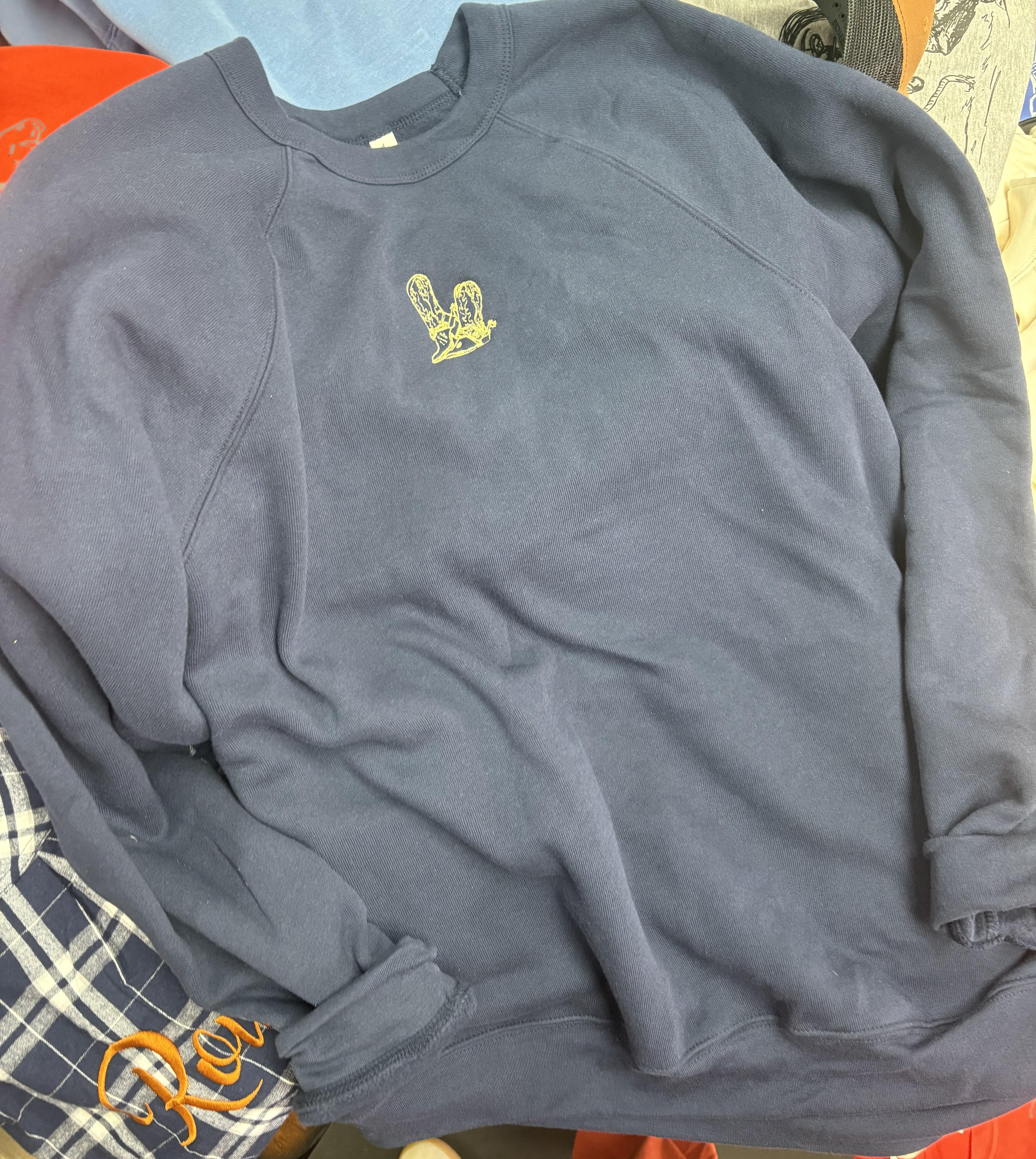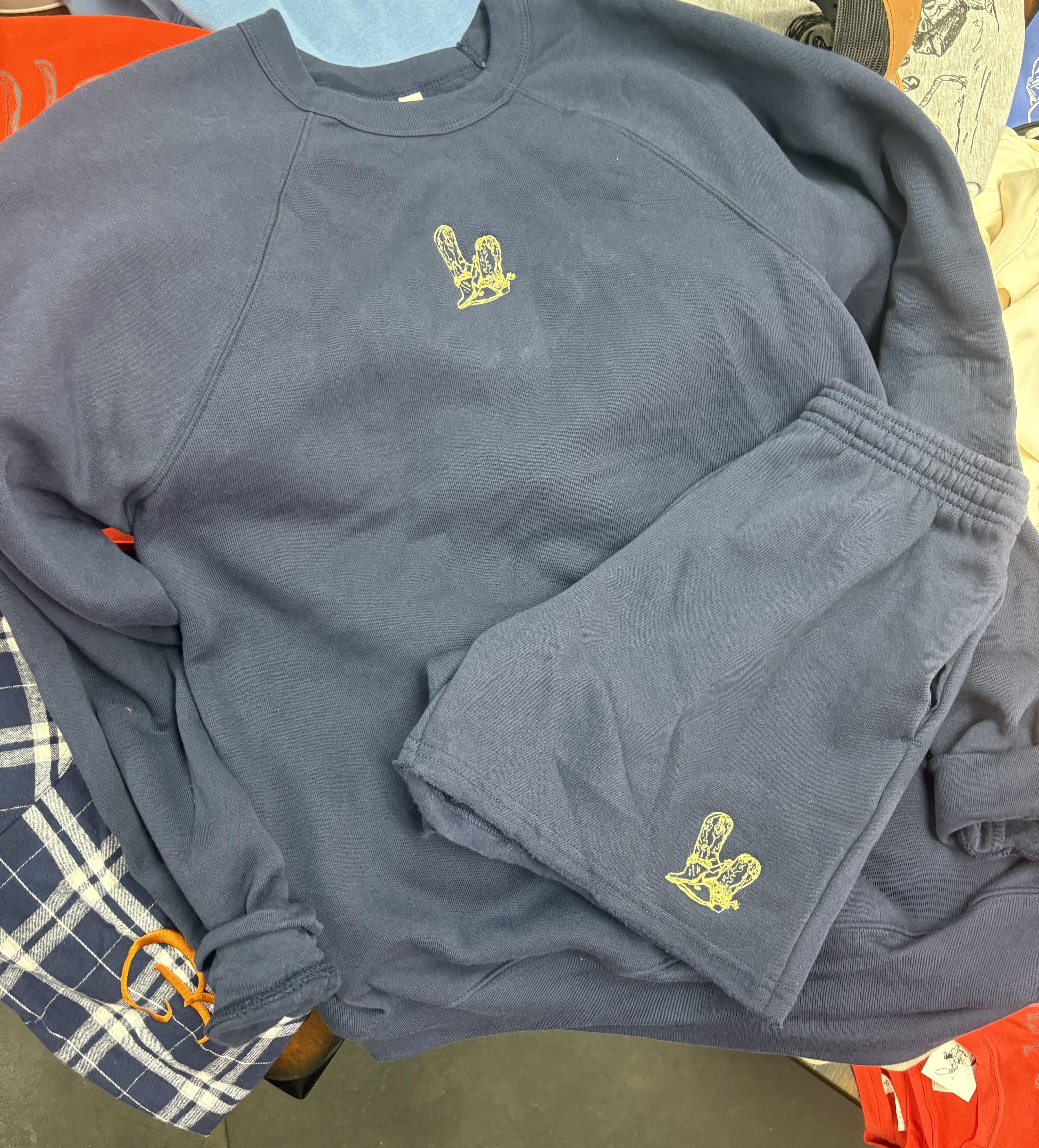 The winter version of the Cowboy Boot set is here! Matchy-match with your Cowboy Boot shorts, or layer this crew over your Cowboy Boot tank.