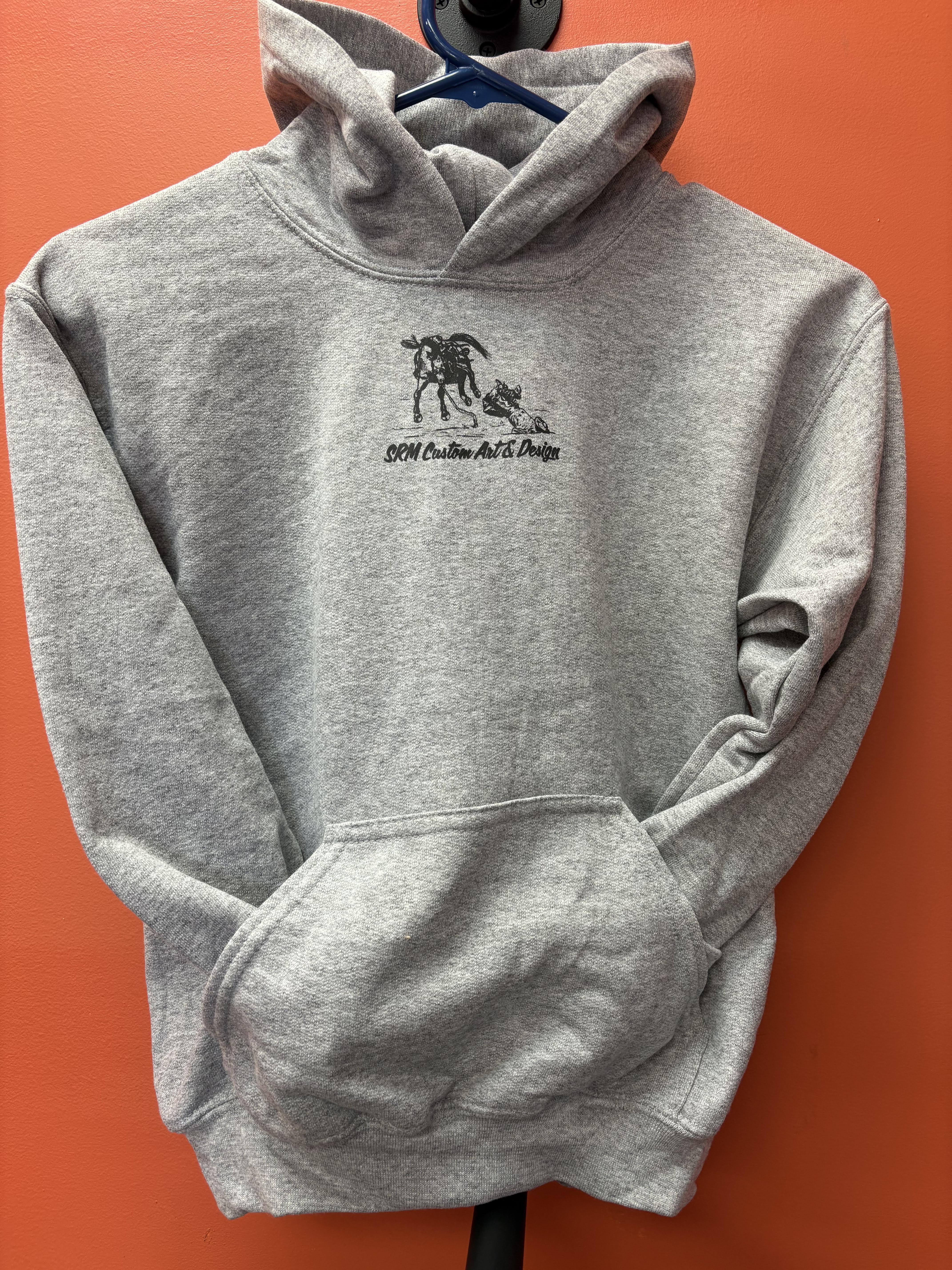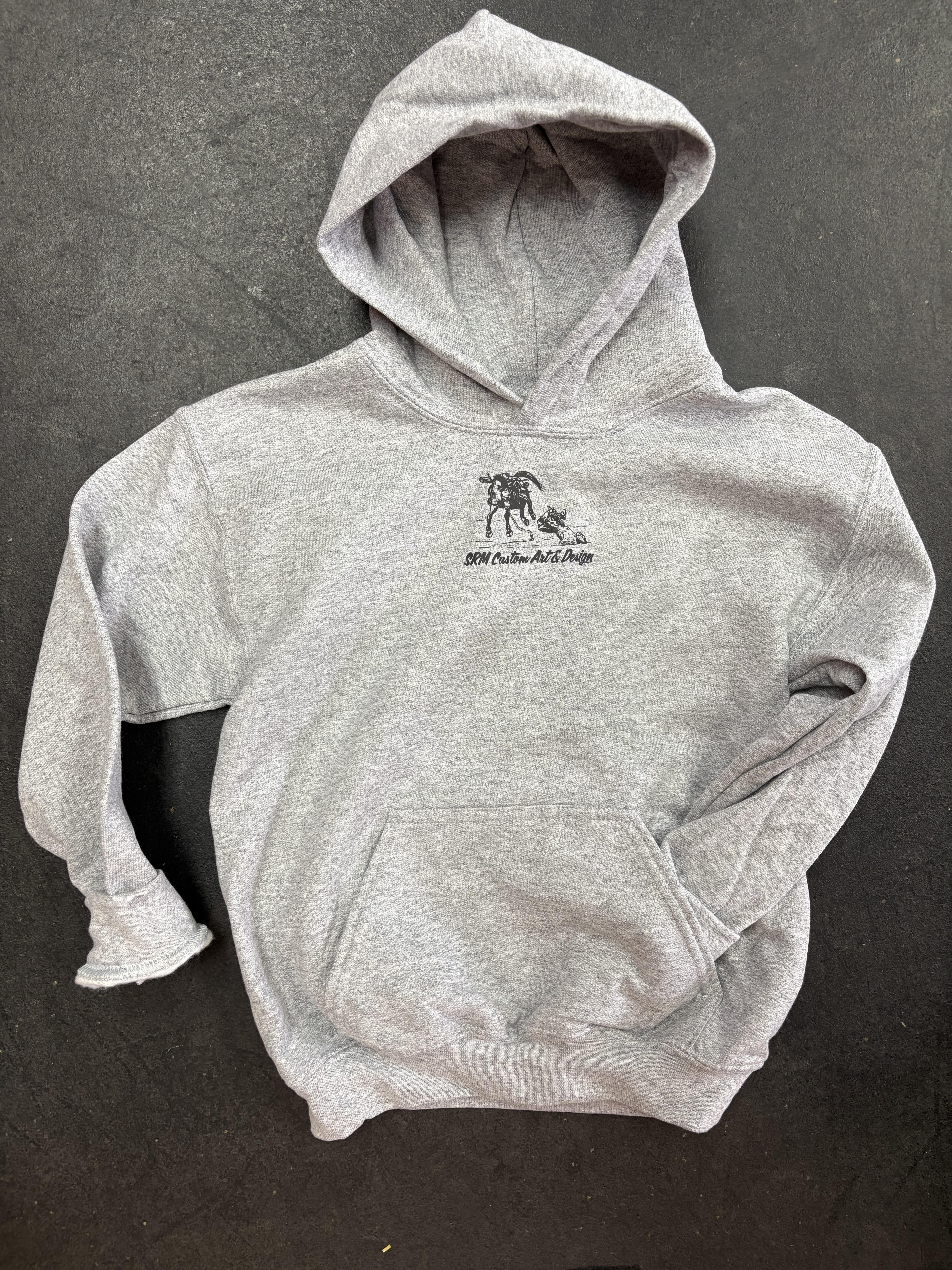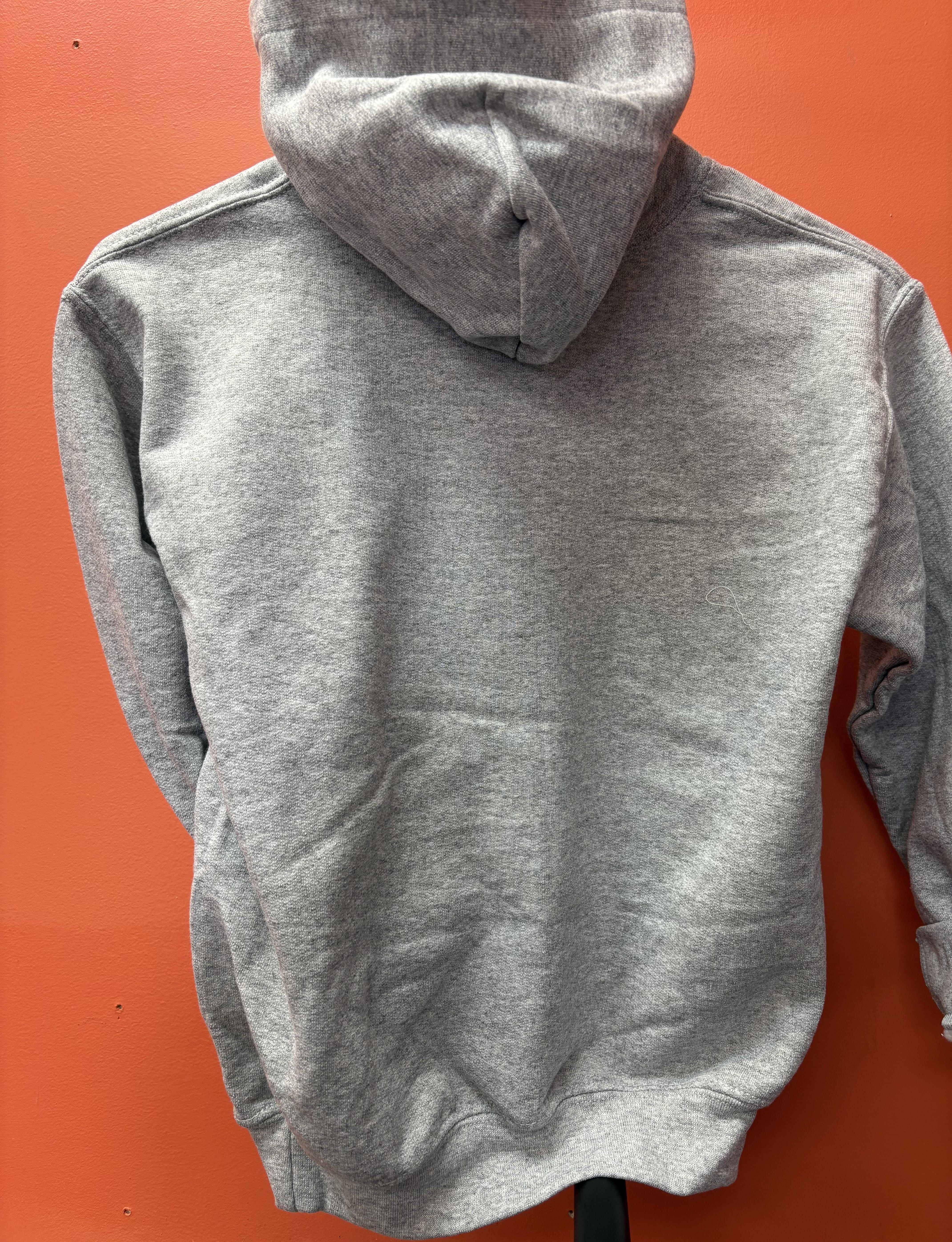 Youth sizing, comfortable, heather grey, cute as heck.
